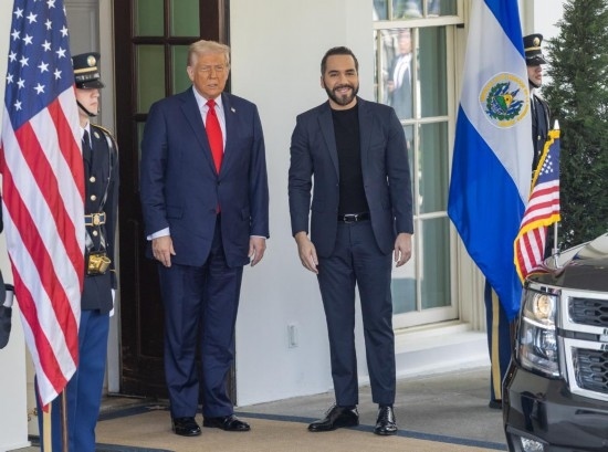 4月14日,美國(guó)總統(tǒng)特朗普在華盛頓白宮迎接到訪的薩爾瓦多總統(tǒng)布克爾。特朗普當(dāng)天在白宮會(huì)見布克爾時(shí)對(duì)記者說,伊朗正在拖延與美國(guó)的伊核問題談判進(jìn)程,可能面臨美國(guó)的“嚴(yán)厲回應(yīng)”。新華社記者胡友松攝