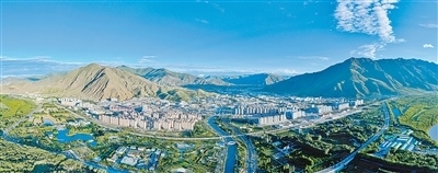 站在山南乃東區(qū)的扎西次日山上俯瞰,群山環(huán)抱中,一片青稞田滿眼蔥綠,格外醒目。