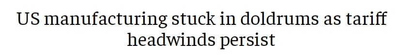 此外,印度《經(jīng)濟(jì)時(shí)報(bào)》2日發(fā)表題為《關(guān)稅阻力持續(xù)存在 美國制造業(yè)陷入低迷》的文章。文章指出,11月,美國制造業(yè)連續(xù)第九個(gè)月萎縮,工廠面臨訂單下滑和原材料價(jià)格上漲的雙重困境,進(jìn)口關(guān)稅的拖累持續(xù)存在。