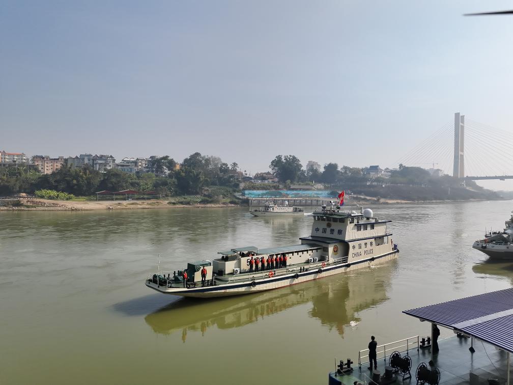 聯(lián)合巡邏執(zhí)法行動(dòng)圓滿結(jié)束,中方執(zhí)法艇順利返回,正在有序靠泊西雙版納景哈警務(wù)碼頭。(云南省公安廳水上巡邏總隊(duì)供圖)