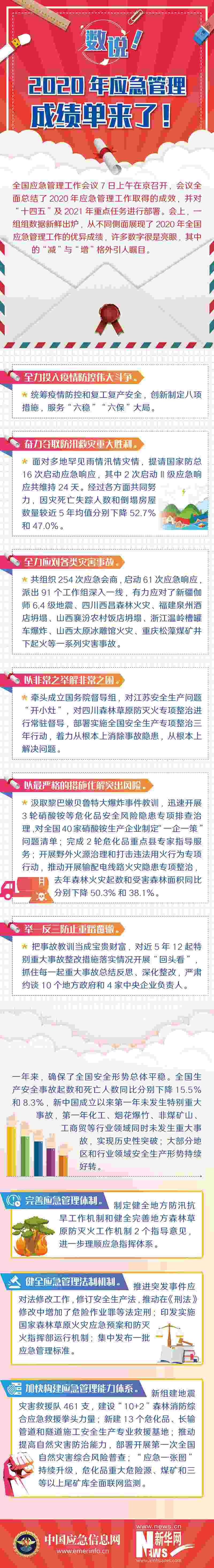 疫情、洪水、森林火災(zāi)……走過極不平凡的2020年,很多國人意識到習以為常的安全感來之不易,也讓世界看到中國應(yīng)急管理能力的提升。1月7日,全國應(yīng)急管理工作會議在京召開,一份關(guān)系你我過去、將來安全感的“清單”清晰浮現(xiàn)。