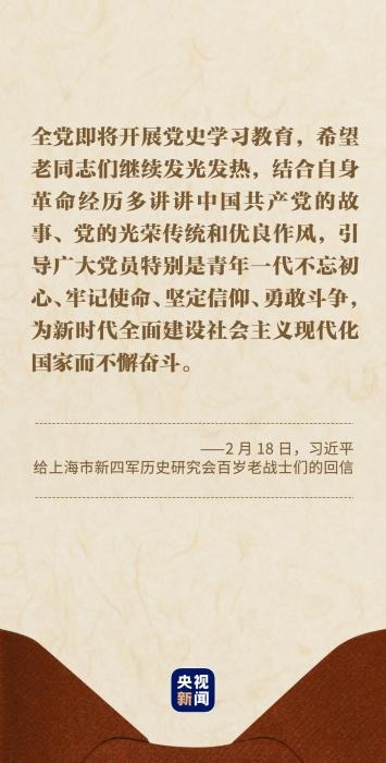 習(xí)近平總書記在回信中說:“你們青年時代就投身革命,為黨和人民事業(yè)英勇奮斗,期頤之年仍心系黨史宣傳教育,深厚的愛黨之情令人感佩。”