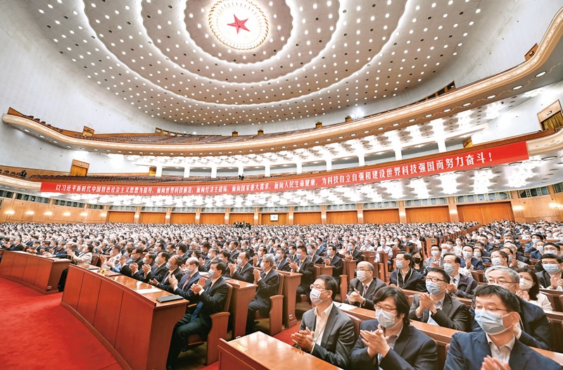 2021年5月28日,中國科學(xué)院第二十次院士大會、中國工程院第十五次院士大會和中國科學(xué)技術(shù)協(xié)會第十次全國代表大會在北京人民大會堂隆重召開。圖為大會現(xiàn)場。新華社記者李響/攝