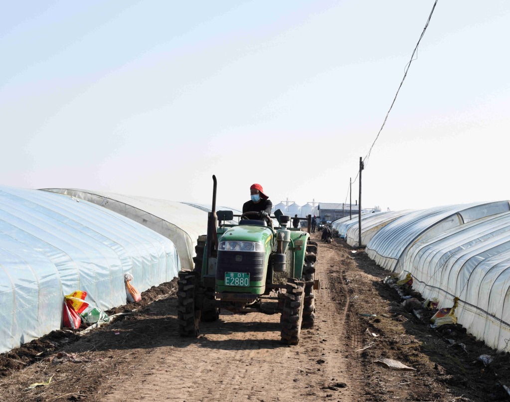 4月2日,在五常市友好村烏拉巴街屯,村民正在將土運(yùn)進(jìn)大棚。新華社記者梁書(shū)斌攝