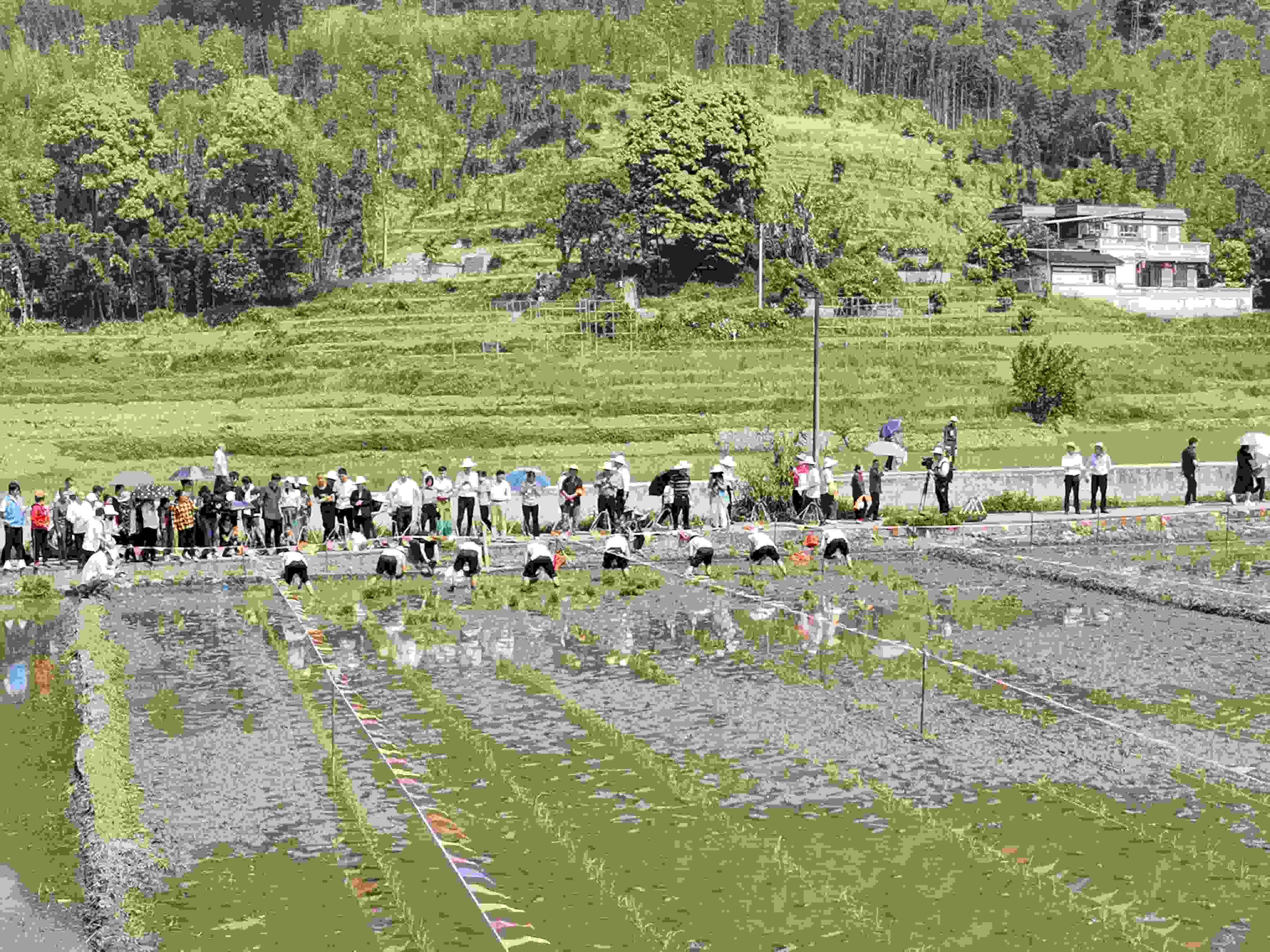 隨著一聲“開秧門嘍”,插秧比賽正式舉行。來(lái)自僰王山鎮(zhèn)各村社插秧能手,不停拋秧、插秧,用汗水和行動(dòng)播種下新年的希望。來(lái)自重慶、成都、宜賓等地的部分孩子也在家長(zhǎng)帶領(lǐng)下到指定田塊體驗(yàn)插秧活動(dòng),增強(qiáng)和土地的親近感。(資料來(lái)源:中共興文縣委宣傳部)