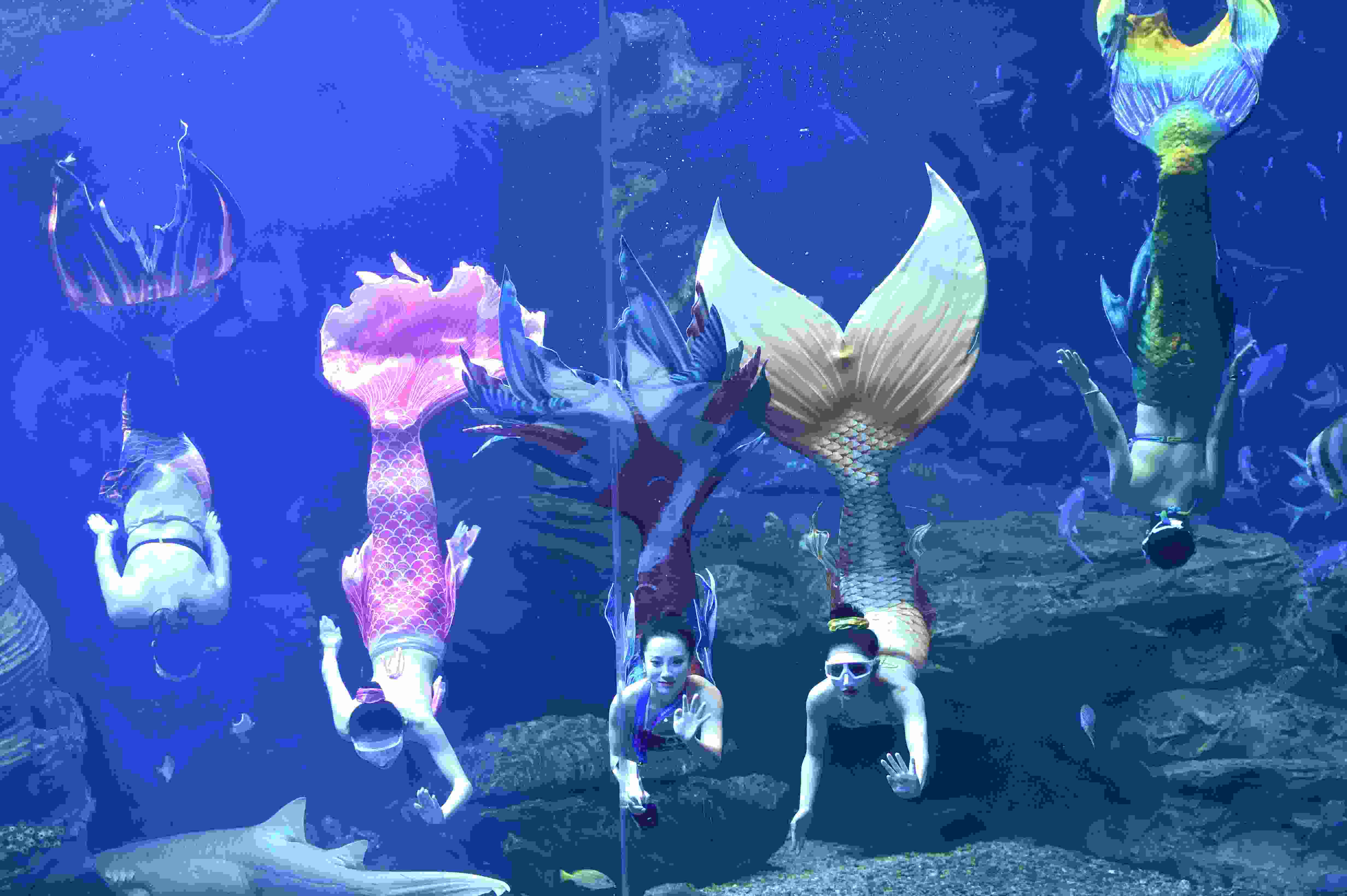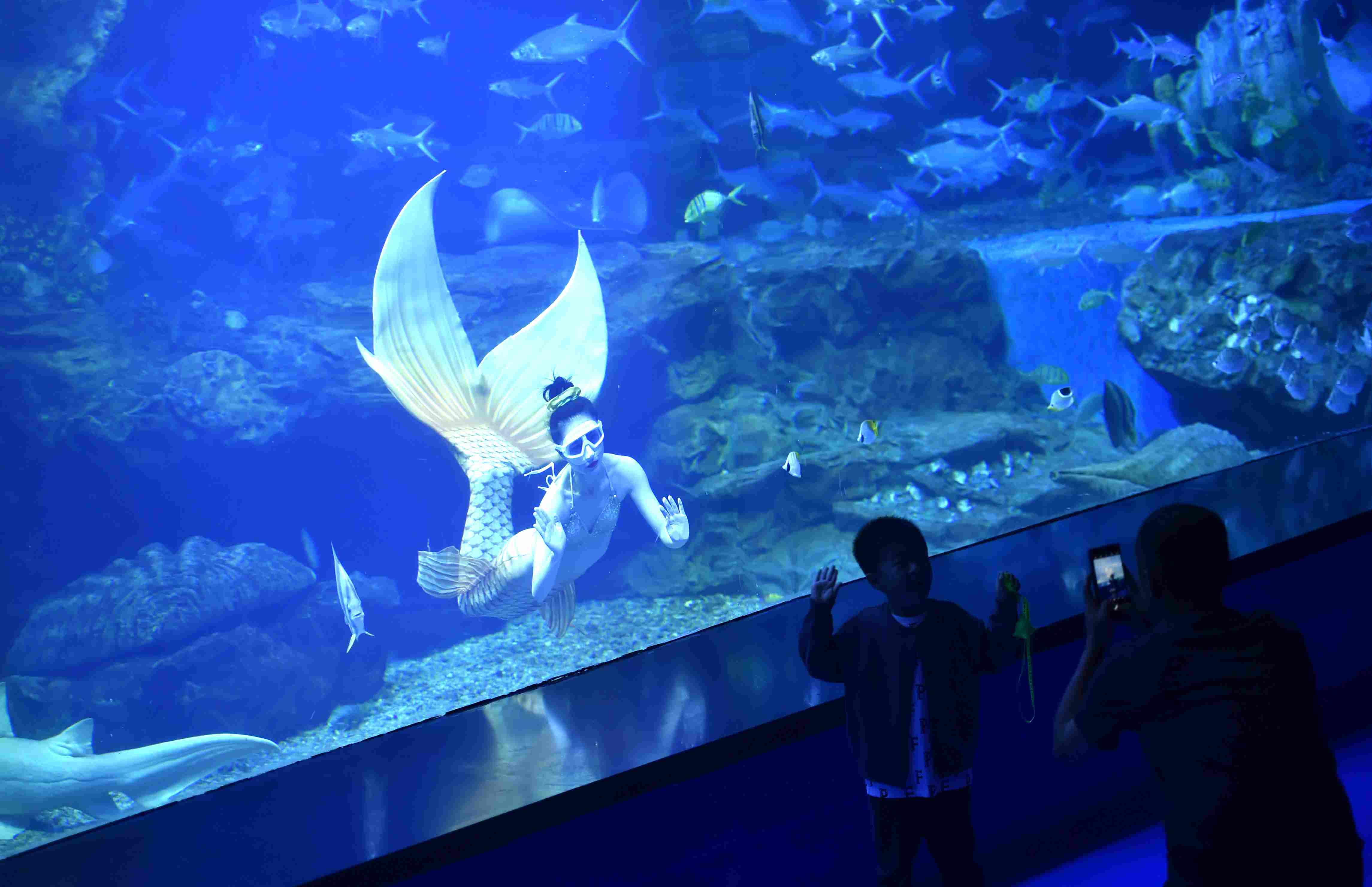 2023年4月28日,“美人魚”在貴陽(yáng)市多彩貴州城極地海洋世界表演。