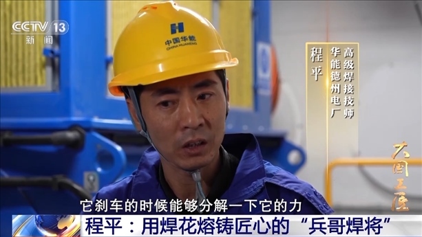 華能德州電廠高級焊接技師 程平:這十來年,新能源迎來了大的發(fā)展,每次看到經(jīng)過我的手,一座座風(fēng)機(jī)更安全地迎風(fēng)旋轉(zhuǎn),能夠參與新能源的建設(shè),為國家出一份力,見證它的發(fā)展進(jìn)程,我感到自己非常驕傲也很自豪。