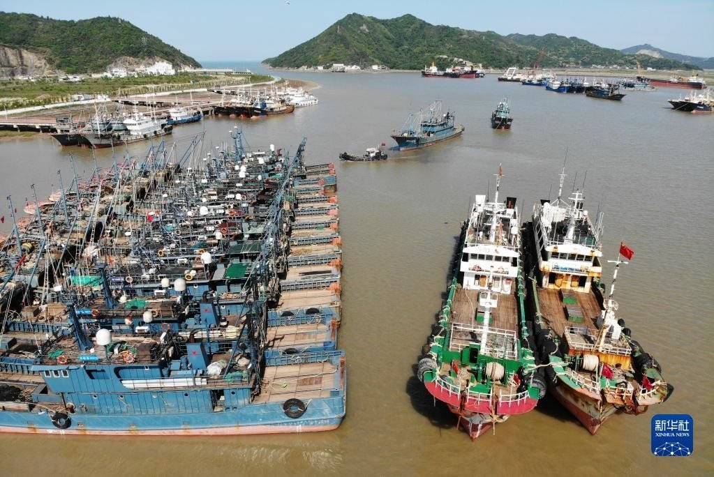 4月30日清晨,在浙江省舟山市普陀區(qū)沈家門漁港,漁船陸續(xù)進港準備休漁(無人機照片)。
