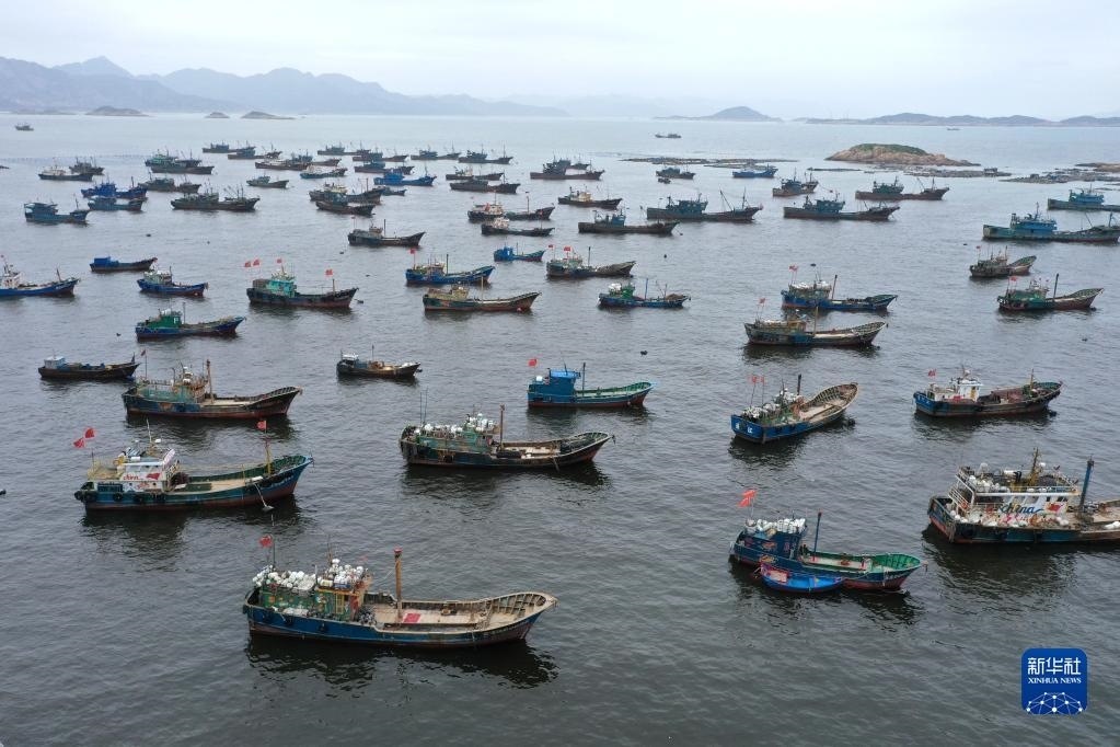 4月30日,準備休漁的漁船停泊在福建省福州市連江縣苔菉鎮(zhèn)北茭村漁港(無人機照片)。