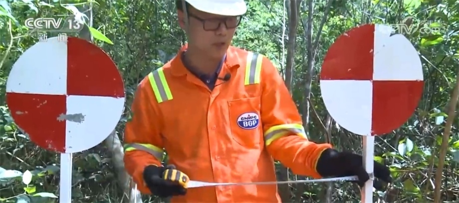 在勘探過程中,工作人員會用不同顏色的飄帶進(jìn)行標(biāo)記,這種紅色的飄帶是代表保護(hù)樹種,禁止砍伐,藍(lán)色飄帶則指示著項目的路線。這些飄帶全都是用可降解材料制成的,在勘探任務(wù)結(jié)束后,還會有專門的小組對工區(qū)進(jìn)行垃圾回收和雨林恢復(fù)工作。目前,項目已經(jīng)完成了70%的工作量,預(yù)計7月中旬可以順利竣工。一年多來,項目多次接受當(dāng)?shù)丨h(huán)保等部門的各項檢查,每一次審計和檢測都收到了相關(guān)方非常高的評價。