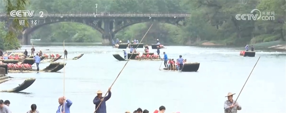 總臺記者 劉夢齡:我現(xiàn)在所在的位置是福建武夷山景區(qū)的九曲溪竹筏碼頭?!拔逡弧奔倨诘牡诙欤湟纳骄皡^(qū)迎來了客流的最高峰,九曲溪竹筏漂流是景區(qū)里最熱門的旅游項(xiàng)目之一,為了更好服務(wù)游客,景區(qū)每天開行竹筏漂流12趟,最多能滿足8000名游客的需求。