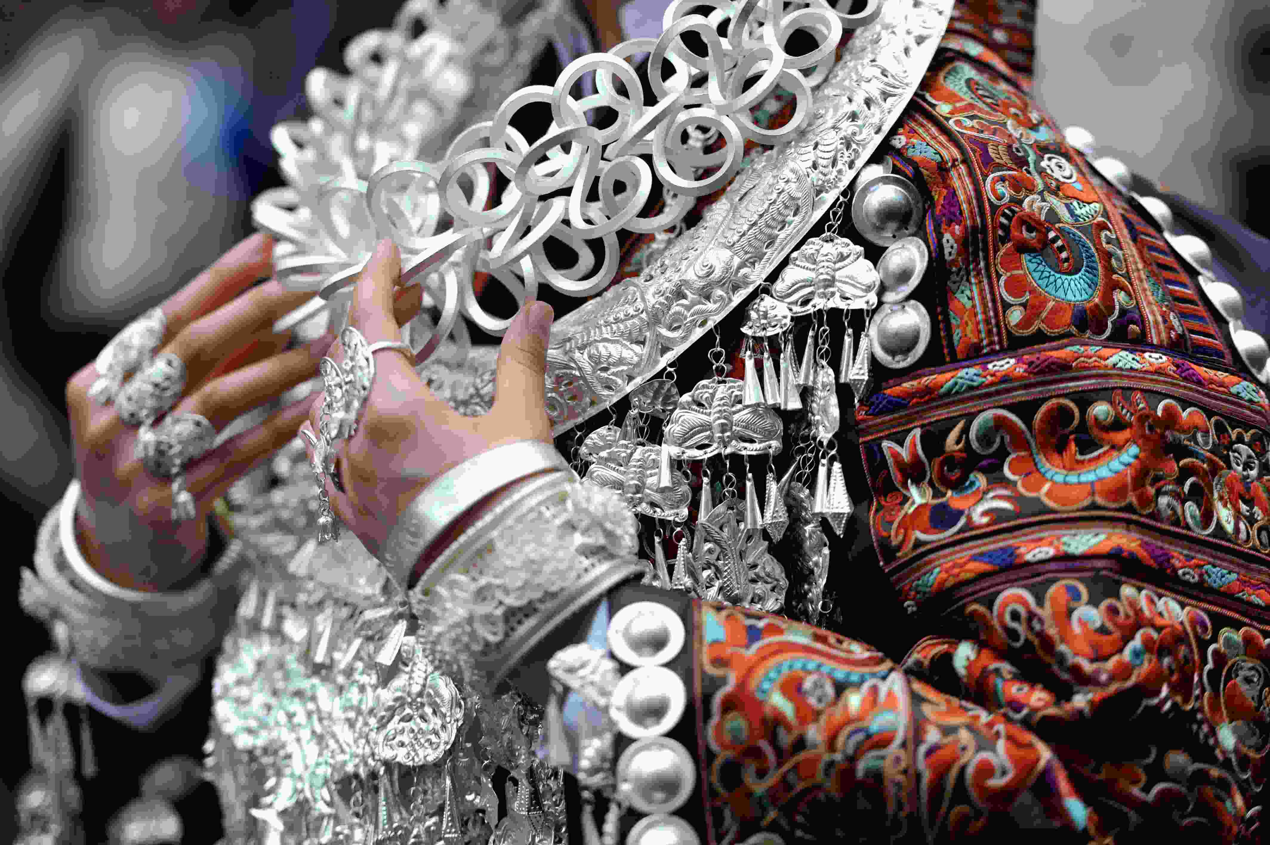 貴州省臺江縣苗族文化豐富多彩厚重,其服飾是苗族文化的重要載體,苗族女子服飾以靚麗的銀飾、精美的刺繡和獨特的審美文化內涵而被稱為“穿在身上的史書”,成為識別苗族9大支系的重要標識,具有極高的藝術、觀賞和收藏價值。 (寧堅)