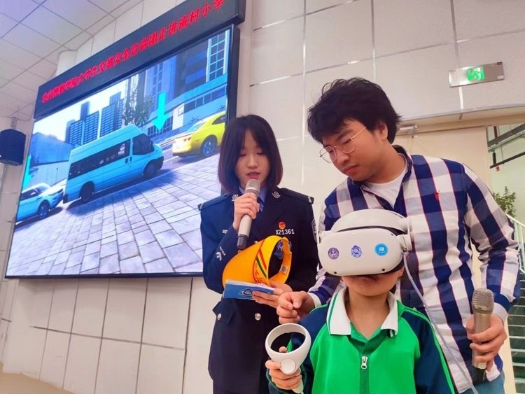 今天(5月4日)是五四青年節(jié),北京警察學(xué)院大學(xué)生交通安全宣講團(tuán)來(lái)到昌平流村小學(xué),開(kāi)展“大學(xué)生牽手小學(xué)生,知危險(xiǎn)會(huì)避險(xiǎn)”的主題宣傳活動(dòng),通過(guò)文藝表演、VR實(shí)景體驗(yàn)、情景劇以及多種交通安全體驗(yàn)類的游戲講解交通安全知識(shí),以這種特殊的方式慶祝自己的節(jié)日。