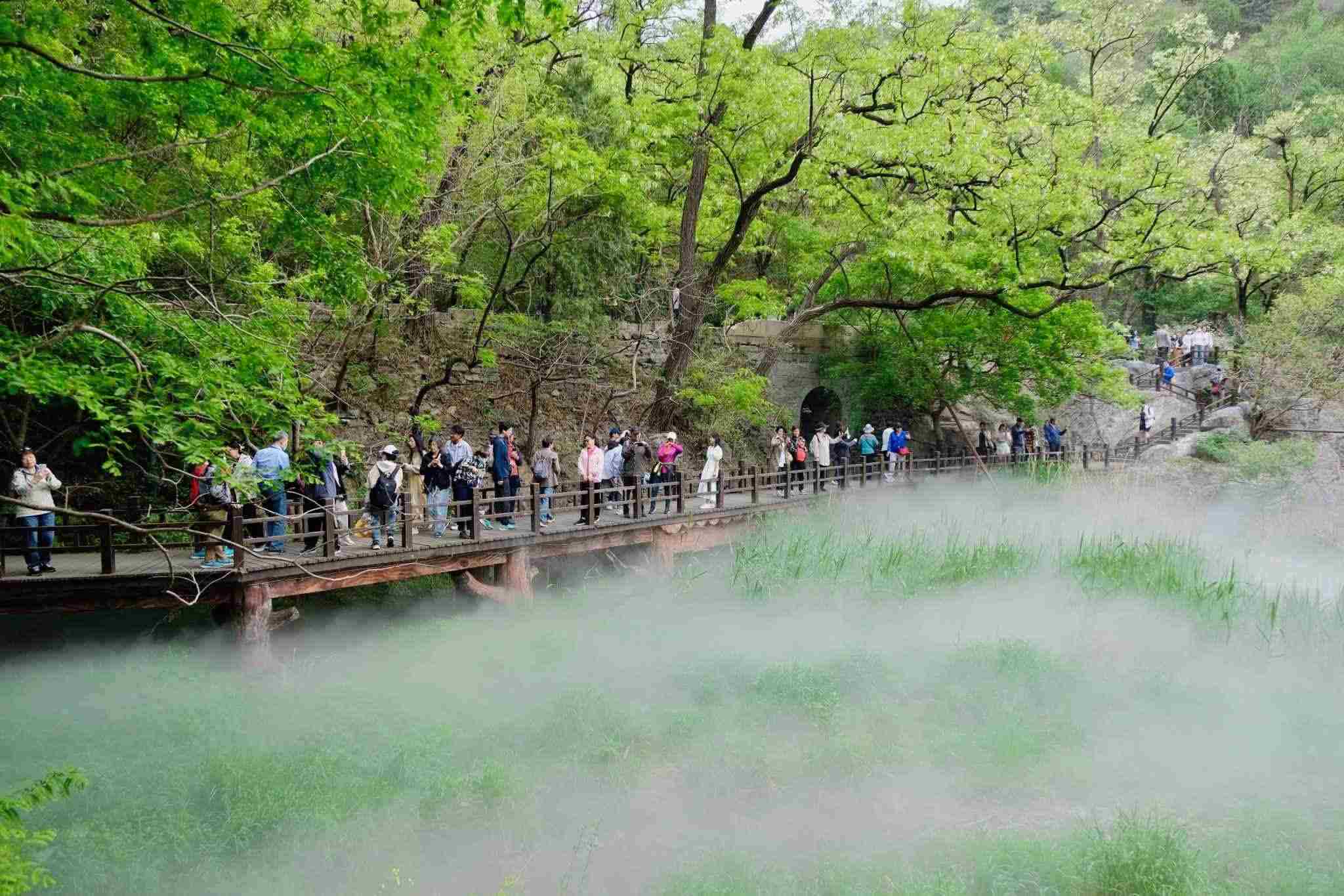 2023年5月6日,北京,立夏時(shí)節(jié),萬物繁茂,國家植物園櫻桃溝景區(qū)“云霧繚繞”宛若“仙境”。視覺中國
