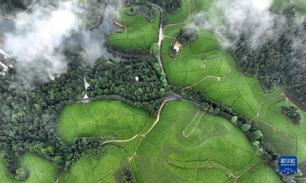 這是5月8日拍攝的鶴峰縣走馬鎮(zhèn)的茶園(無人機照片)。