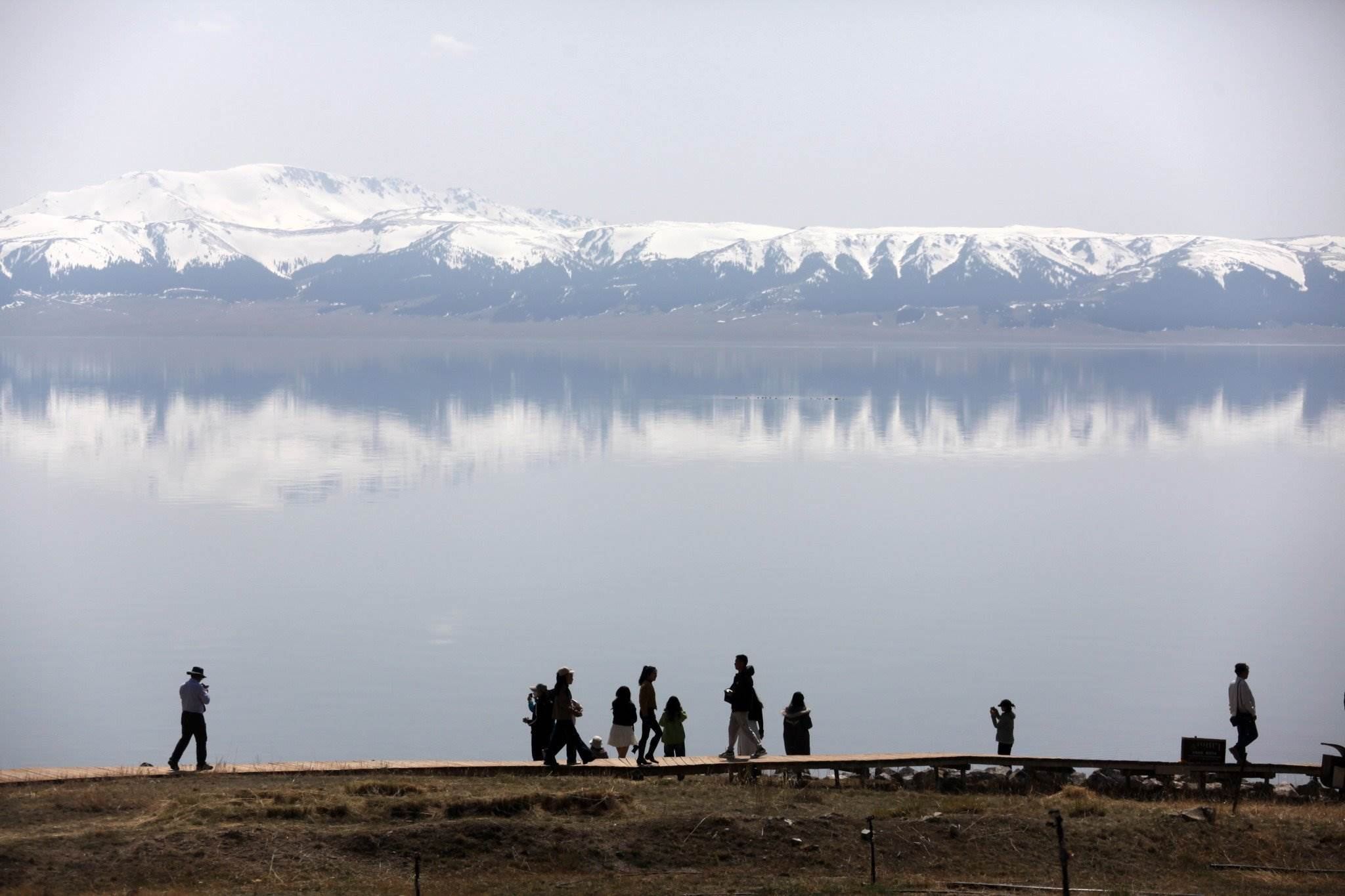 2023年5月8日,新疆博州,賽里木湖景區(qū)風(fēng)光秀美,吸引游客前來游玩。視覺中國(guó)
