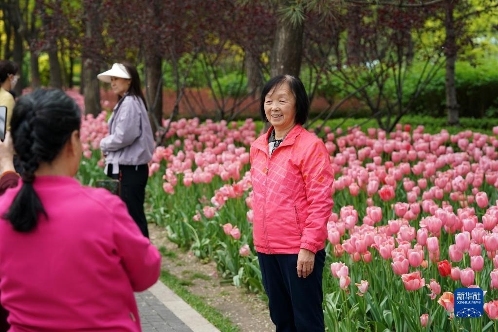 近日,山西省太原市迎澤公園內(nèi)各色郁金香競(jìng)相綻放,吸引游人前來觀花賞景。新華社記者 詹彥 攝