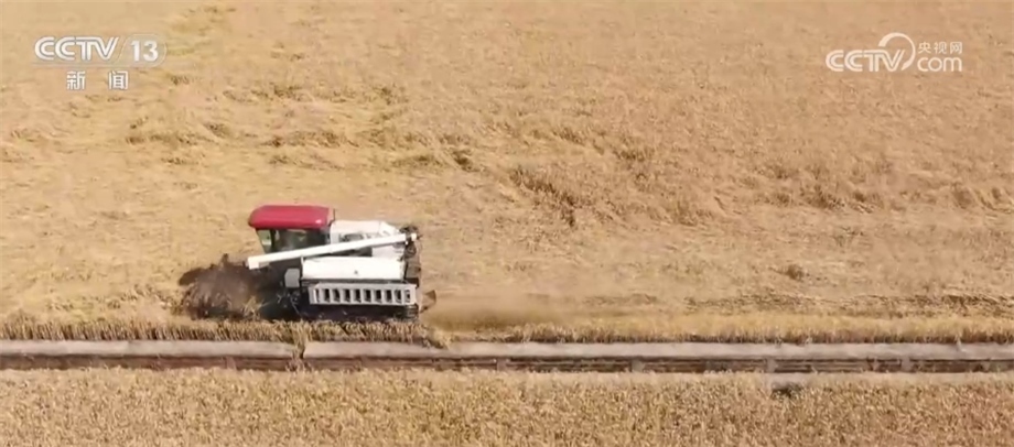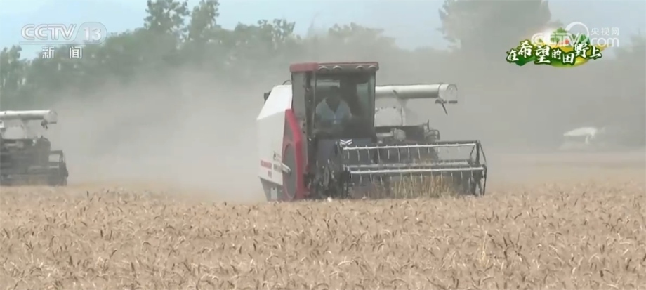 總臺(tái)記者 趙雄:歡迎大家跟隨我們的鏡頭一起走進(jìn)成都平原,來(lái)感受豐收的喜悅。我現(xiàn)在所在的位置是四川邛崍市的萬(wàn)畝糧油示范基地。在我身后,200多畝成片的小麥已經(jīng)成熟,放眼望去,金黃的麥穗在風(fēng)中搖曳,麥浪翻滾煞是喜人。在麥田上,我們可以看到多臺(tái)大型收割機(jī)來(lái)回穿梭作業(yè),一簇簇麥穗被卷入收割機(jī)倉(cāng),收割、脫粒、除雜一氣呵成,金色麥粒傾瀉入倉(cāng)。