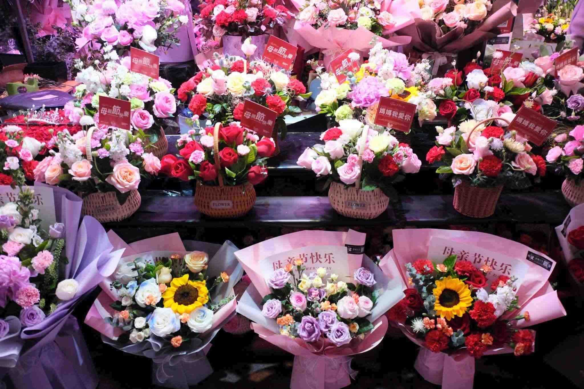 2023年5月13日,沈陽,母親節(jié)到來之際,和平區(qū)中山公園旁鮮花市場(chǎng),一片忙碌景象。視覺中國