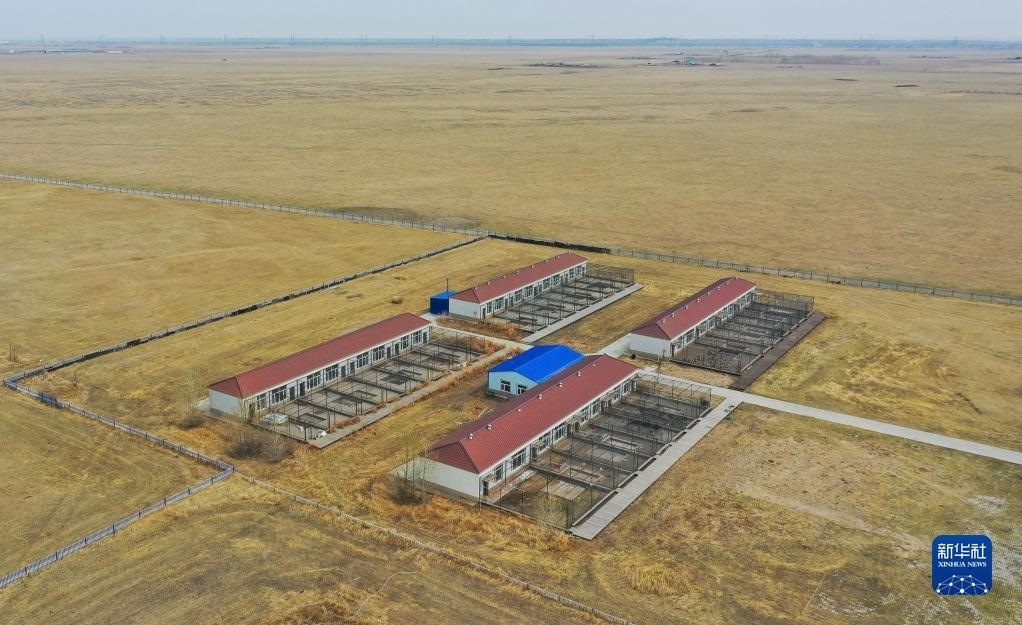 5月10日,徐沃德樂胡幫助一只救助的丹頂鶴張開翅膀。