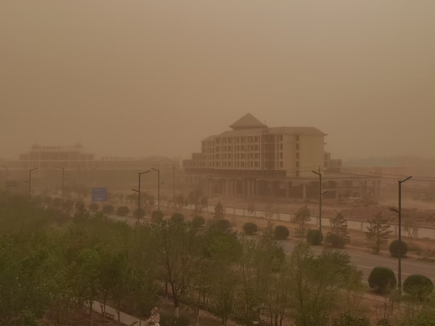 內蒙古二連浩特出現(xiàn)強沙塵暴 沙墻滾滾而來