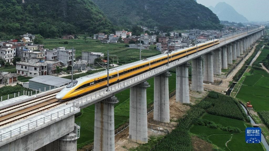5月16日,高速綜合檢測(cè)列車(chē)行駛在貴南高鐵上進(jìn)行檢測(cè)工作(無(wú)人機(jī)照片)。