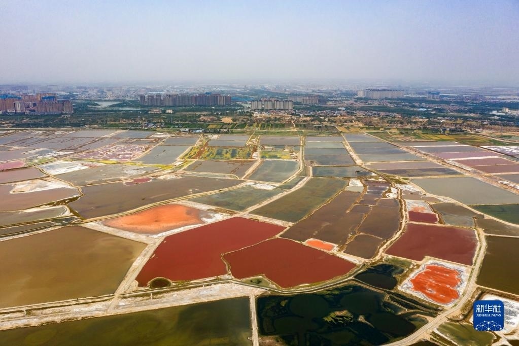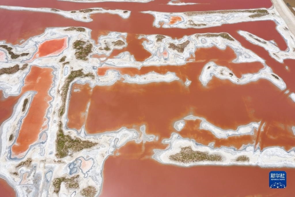 這是5月17日拍攝的運城鹽湖一景(無人機照片)。   新華社記者 楊晨光 攝