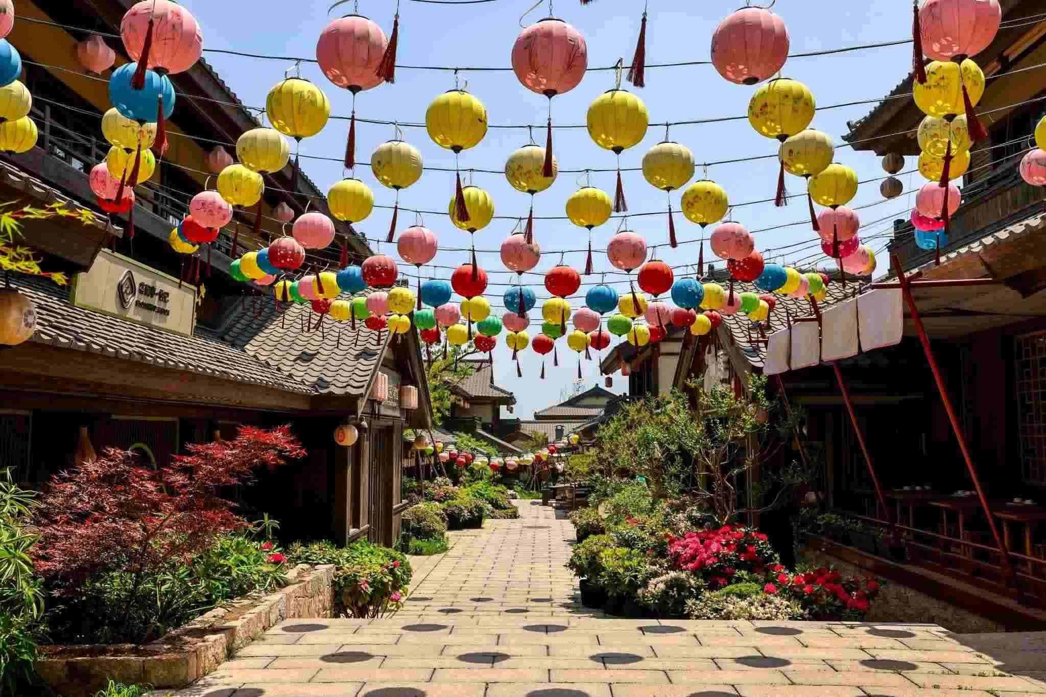 2023年5月19日,青島,西海岸新區(qū)藏馬鎮(zhèn),鑲嵌在藏馬山山麓的網(wǎng)紅“打卡地”阿朵花嶼美不勝收。漫步在這個唐風(fēng)古鎮(zhèn)中,繽紛花色點綴在建筑之間,好似畫中景色,讓人流連沉醉。視覺中國