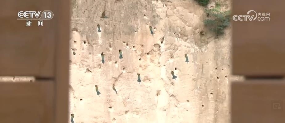 眼前,這些看上去很像是泥巴墻的建筑,其實(shí)是人工建造的候鳥(niǎo)巢穴。根據(jù)栗喉蜂虎的生活習(xí)慣,保護(hù)區(qū)工作人員專門在它們回來(lái)之前就對(duì)懸壁進(jìn)行修整,讓這些美麗的小鳥(niǎo)更方便安家。