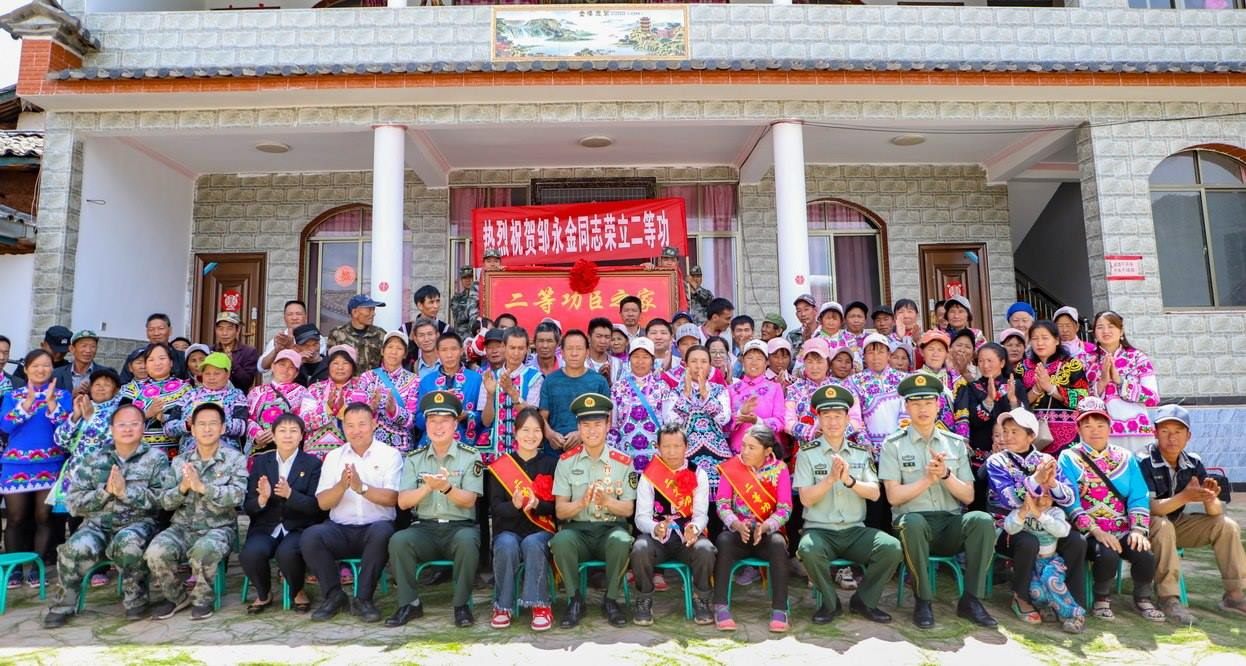鑼鼓喧天,鞭炮齊鳴。近日,云南省楚雄彝族自治州大姚縣桂花鎮(zhèn)大河村張燈結(jié)彩、熱鬧非凡,武警云南總隊昭通支隊派出送喜報小分隊輾轉(zhuǎn)600余公里來到這里,聯(lián)合當(dāng)?shù)厝宋洳亢屯艘圮娙耸聞?wù)局,為榮立個人二等功的現(xiàn)役軍人鄒永金的家屬送去喜報、牌匾和慰問金。