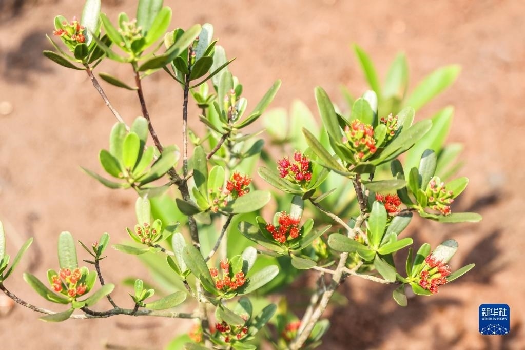 近日,在海南東寨港國(guó)家級(jí)自然保護(hù)區(qū)里的瀕危紅樹(shù)植物紅欖李迎來(lái)花期。據(jù)悉,紅欖李是珍稀瀕危紅樹(shù)植物、國(guó)家一級(jí)保護(hù)植物,被譽(yù)為紅樹(shù)林中的“大熊貓”。國(guó)內(nèi)一度僅存14株。2014年,海南東寨港國(guó)家級(jí)自然保護(hù)區(qū)管理局成功培育出紅欖李幼苗,并建立紅欖李野外種植基地。如今這里已有超過(guò)20畝、約2300株的紅欖李。