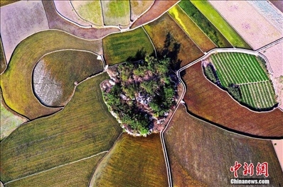 航拍貴州萬峰林水田宛如天然“調(diào)色板”。