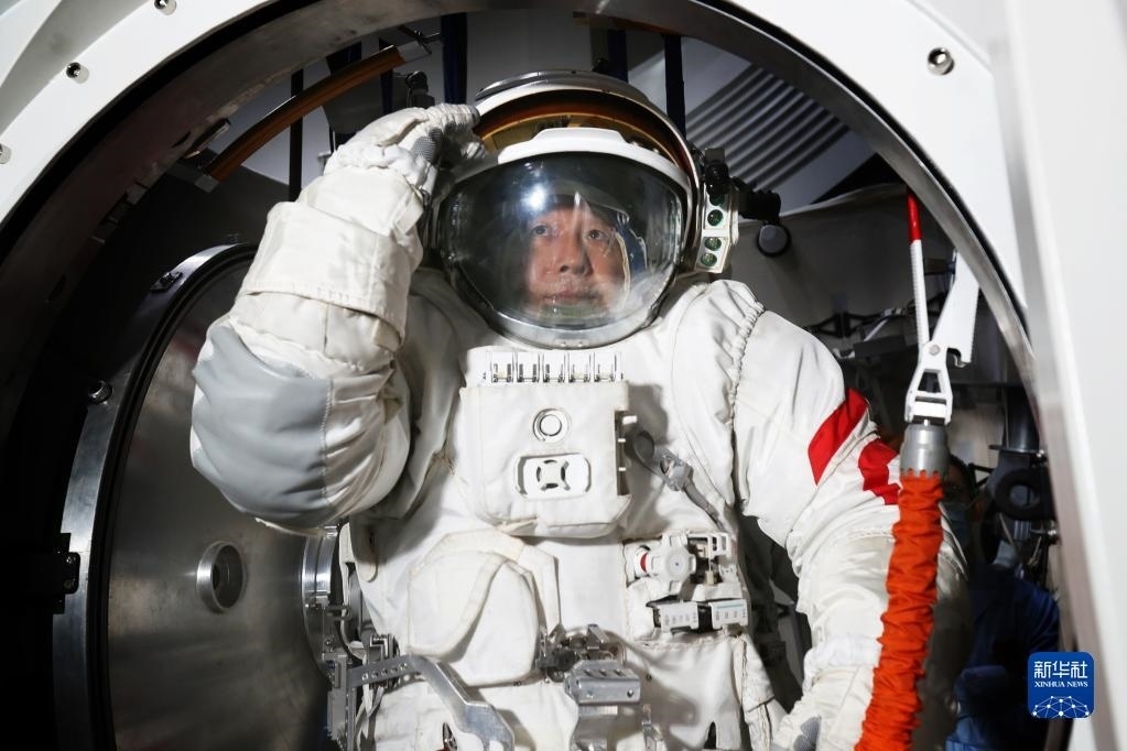 神舟十六號航天員景海鵬進(jìn)行出艙程序訓(xùn)練(2023年5月5日攝)。新華社發(fā)(徐部 攝)