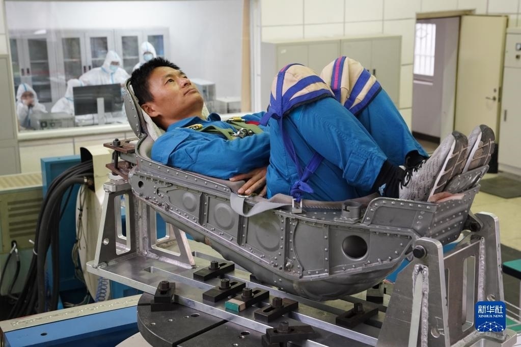 神舟十六號航天員朱楊柱在進(jìn)行超重耐力訓(xùn)練(2022年4月22日攝)。新華社發(fā)(王夏陽 攝)