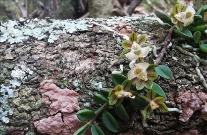蘭科新物種——臥龍無柱蘭,于2021年11月發(fā)表于國際植物學(xué)期刊《北歐植物學(xué)》,是程躍紅和林紅強等人在轄區(qū)巡護監(jiān)測過程中發(fā)現(xiàn)的,以模式產(chǎn)地“臥龍”命名。該蘭科植物生長在海拔2700米左右的陡峭崖壁上,植株高約19-22厘米,花期7-8月,莖為呈紫紅色,開白色小花,中心為綠色,目前僅在大熊貓國家公園臥龍片區(qū)發(fā)現(xiàn)1個居群,約70株成熟個體,參照IUCN(世界自然保護聯(lián)盟)的標(biāo)準(zhǔn),臥龍無柱蘭被認定為“極度瀕?!钡燃壍闹参?。