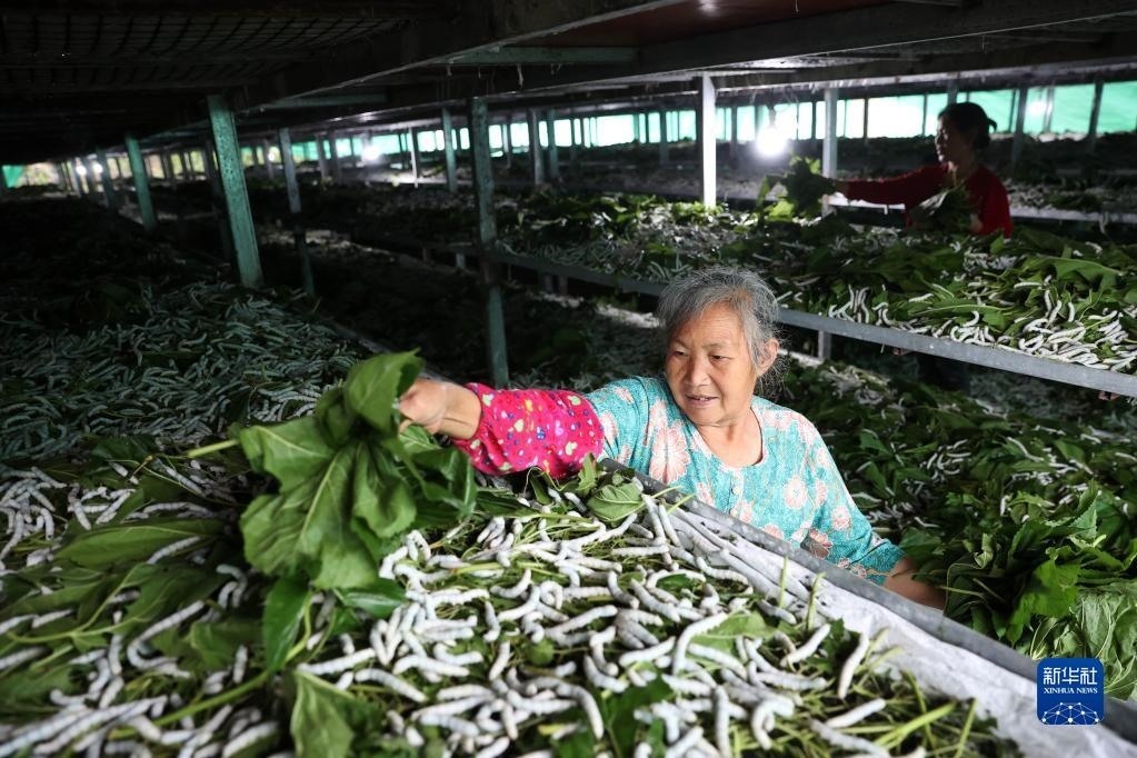 重慶市黔江區(qū)將石漠化治理與蠶桑產(chǎn)業(yè)發(fā)展相結(jié)合,在石漠化地里栽植桑樹(shù)養(yǎng)蠶,蠶繭加工成絲織品銷往多個(gè)國(guó)家和地區(qū),增加了當(dāng)?shù)剞r(nóng)民收入,同時(shí)也改善了當(dāng)?shù)氐纳鷳B(tài)環(huán)境,減少了水土流失。新華社發(fā)(楊敏 攝)