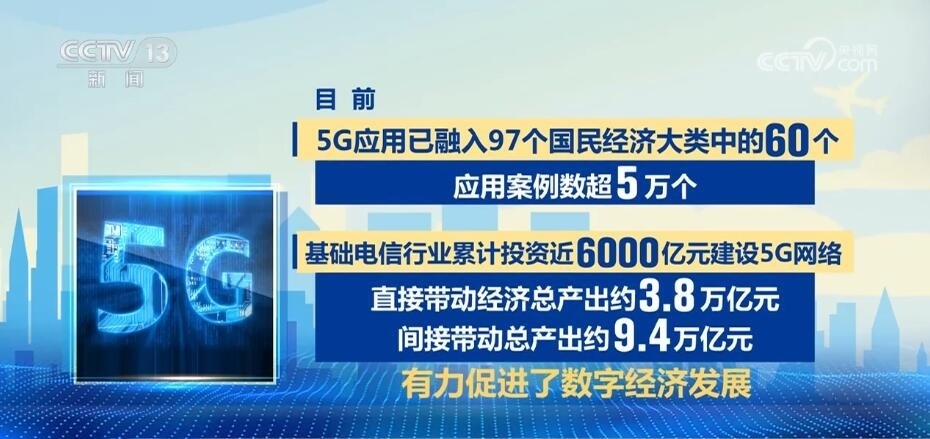 目前,5G應(yīng)用已融入97個(gè)國(guó)民經(jīng)濟(jì)大類(lèi)中的60個(gè),應(yīng)用案例數(shù)超5萬(wàn)個(gè)?;A(chǔ)電信行業(yè)累計(jì)投資近6000億元建設(shè)5G網(wǎng)絡(luò),直接帶動(dòng)經(jīng)濟(jì)總產(chǎn)出約3.8萬(wàn)億元,間接帶動(dòng)總產(chǎn)出約9.4萬(wàn)億元,有力促進(jìn)了數(shù)字經(jīng)濟(jì)發(fā)展。