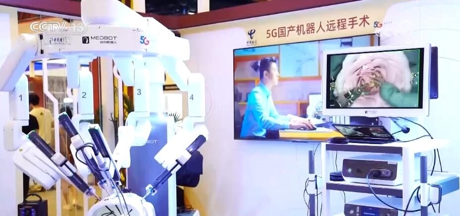 這臺(tái)5G機(jī)器人正在用一朵鮮花模擬人體臟器手術(shù),而實(shí)際操刀的醫(yī)生是在上海通過(guò)5G網(wǎng)絡(luò)來(lái)進(jìn)行遠(yuǎn)程手術(shù)。