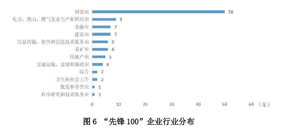 4.“先鋒100”企業(yè)分布于12個(gè)行業(yè),制造業(yè)獨(dú)占半壁江山