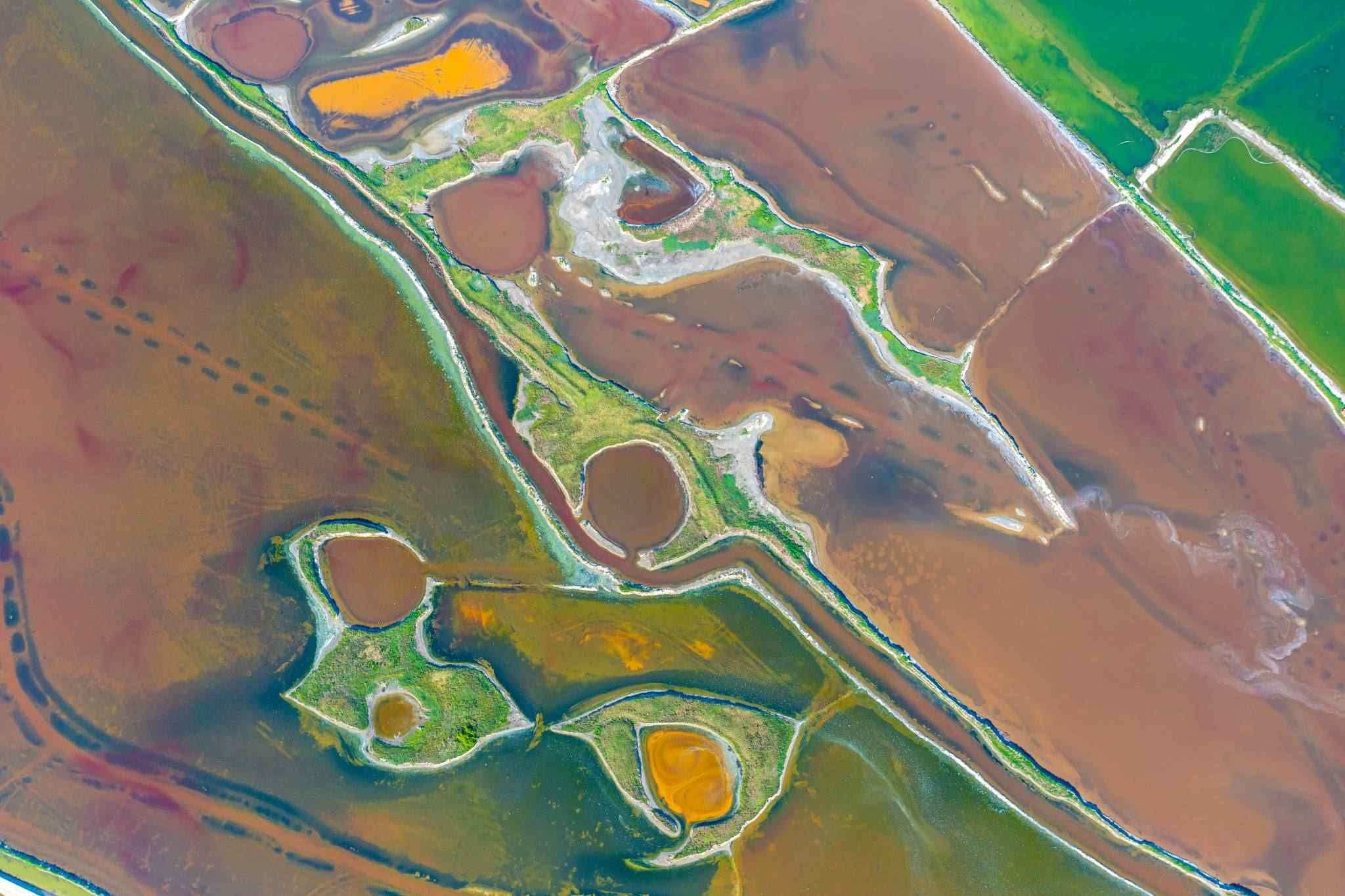 山西運(yùn)城:七彩鹽湖如大地調(diào)色板