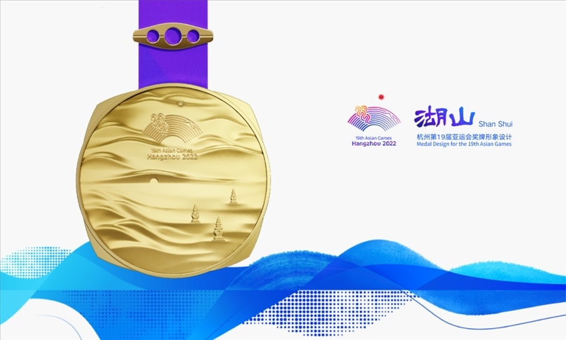 本次亞運會獎牌設計由中國美術學院工業(yè)設計系主任章俊杰帶領姜雨沁等設計團隊成員,歷時近兩年反復修改論證后創(chuàng)作完成。章俊杰表示:“獎牌設計意象匯聚了杭州三大世界文化遺產——西湖、大運河、良渚古城遺址,打破了亞運會標志放在獎牌中心的常規(guī)版式,將標志置于開闊的畫卷之上,體現(xiàn)開放包容的東方審美?!?/p>