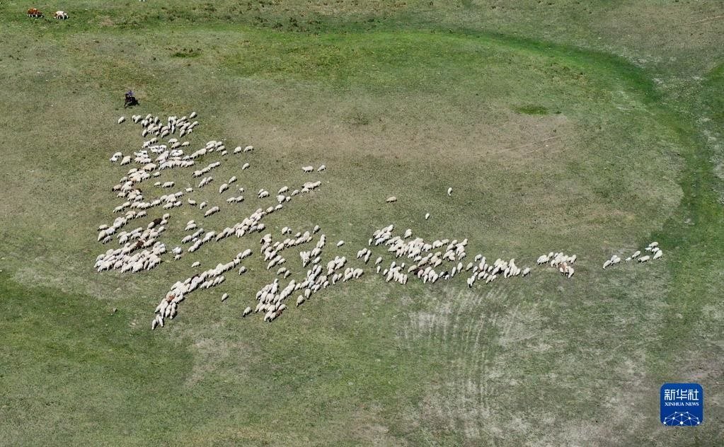 夏日,內(nèi)蒙古阿魯科爾沁草原綠意盎然,牛羊在草原上覓食,景色如畫。新華社記者 連振 攝