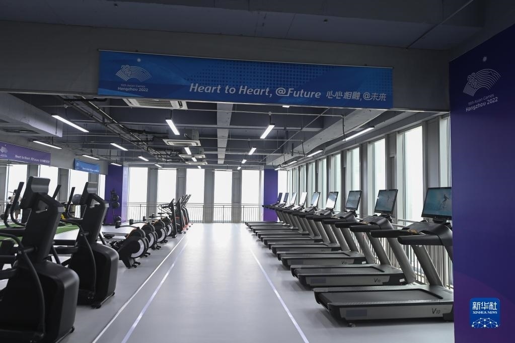 這是6月16日拍攝的杭州亞運(yùn)村健身中心內(nèi)景。健身中心設(shè)置有氧運(yùn)動(dòng)區(qū)、爆發(fā)力訓(xùn)練區(qū)、拉伸恢復(fù)區(qū)、綜合器械區(qū)及功能性訓(xùn)練區(qū),可容納約350名運(yùn)動(dòng)員同時(shí)使用。