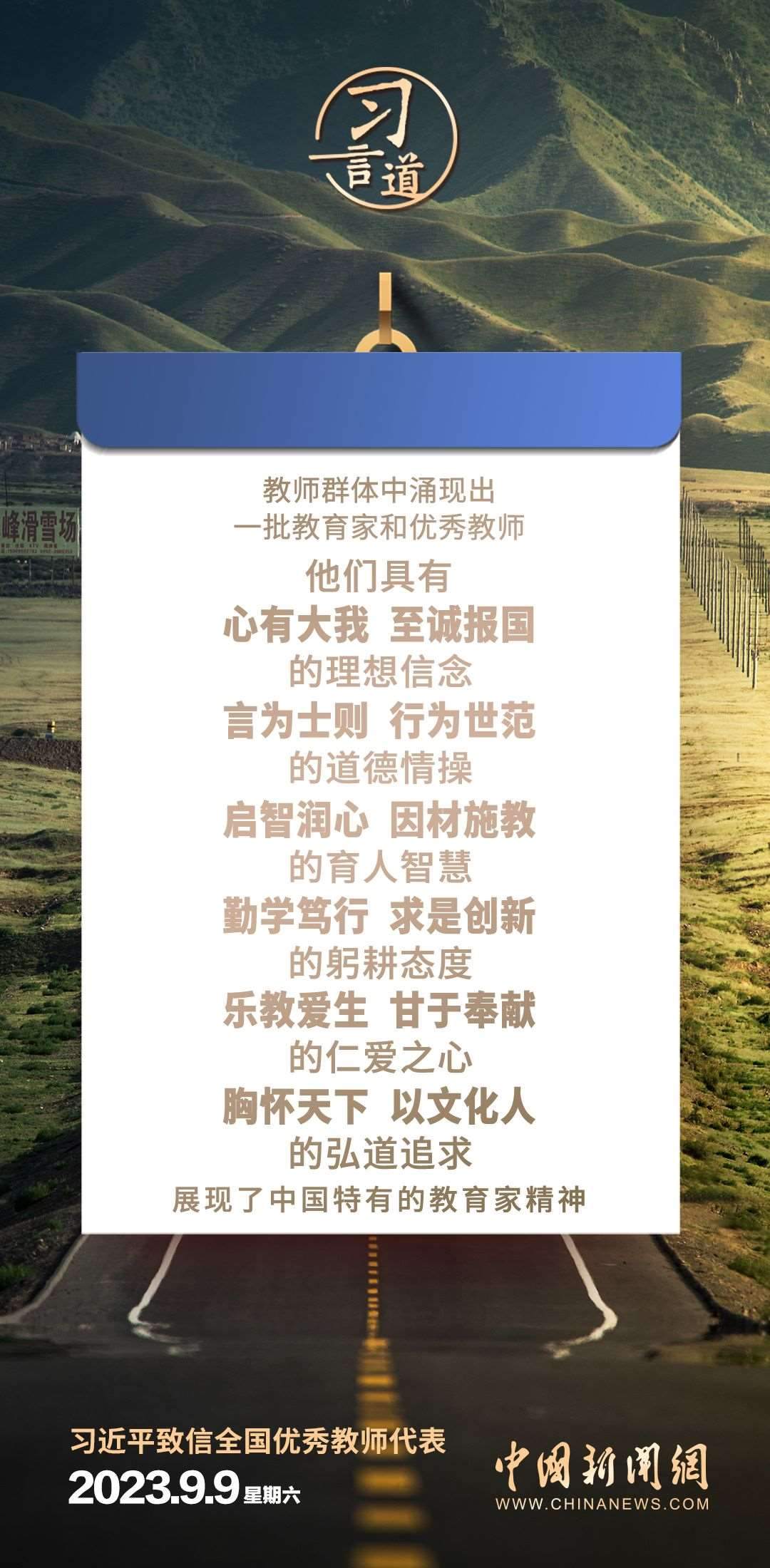 全國優(yōu)秀教師代表座談會9月9日在京召開。中共中央總書記、國家主席、中央軍委主席習近平致信與會教師代表,在第三十九個教師節(jié)到來之際,代表黨中央,向他們和全國廣大教師及教育工作者致以節(jié)日的問候和誠摯的祝福。習近平指出——