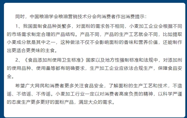 ·面粉添加“科技與狠活”?中國糧油學(xué)會(huì)營銷技術(shù)分會(huì)辟謠:與事實(shí)不符。