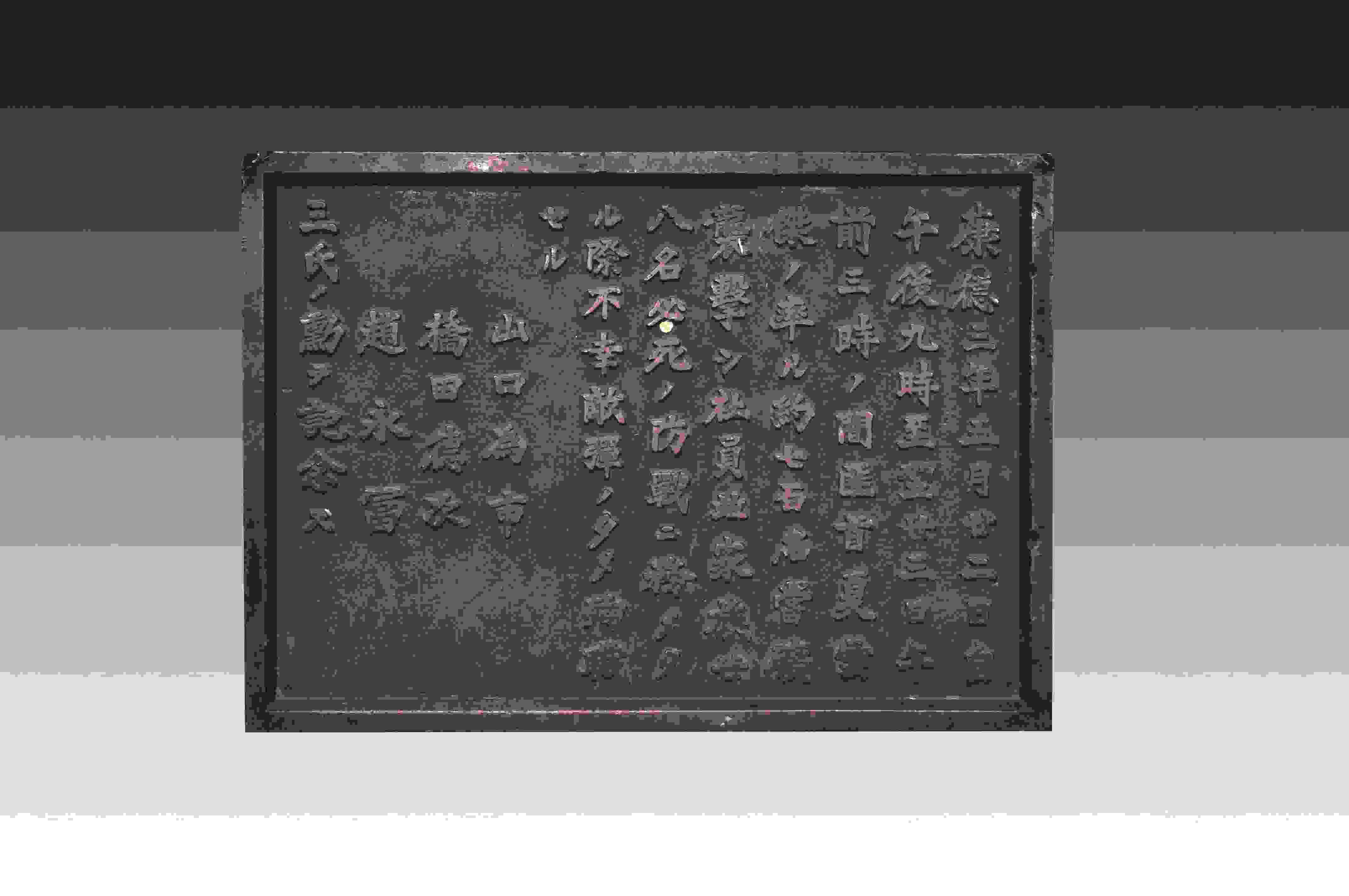 這塊碑文銅牌來自黑龍江鶴崗礦區(qū)的一座“忠靈塔”上,是日本侵略者為侵華戰(zhàn)爭(zhēng)中戰(zhàn)死的日偽軍而建。碑文銅牌,長(zhǎng)51厘米、高36.5厘米、寬2厘米、重12千克。上面的文字記載了日偽軍和抗聯(lián)戰(zhàn)士戰(zhàn)斗過程。從表述內(nèi)容來看,這塊碑文具有極大欺騙性。它制造了普通百姓遭土匪襲擊的“無辜”假象,妄圖以此加深東北民眾與革命隊(duì)伍之間的對(duì)立情緒。而事實(shí)真相是,1936年5月22日夜,東北人民革命軍第六軍軍長(zhǎng)夏云杰指揮六軍第一、二、三團(tuán),分兵兩路襲擊了鶴崗礦山。在我黨地下工作人員的密切配合下,順利解除了礦山警察二隊(duì)的全部武裝,并擊斃日軍指導(dǎo)官山口為市、橋田德次和偽礦山警察大隊(duì)隊(duì)長(zhǎng)趙永富。這次戰(zhàn)斗繳獲敵人大批槍支彈藥,我軍無一人傷亡。23日凌晨,夏云杰率領(lǐng)部隊(duì)攜帶戰(zhàn)利品凱旋。