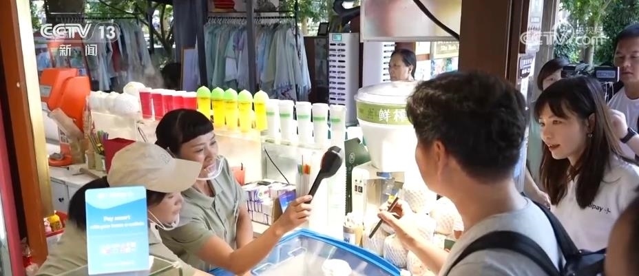 在亞運特許商品零售店里,高管們開啟了“買買買”模式,當他們在付款時可以使用本國的電子錢包進行支付。