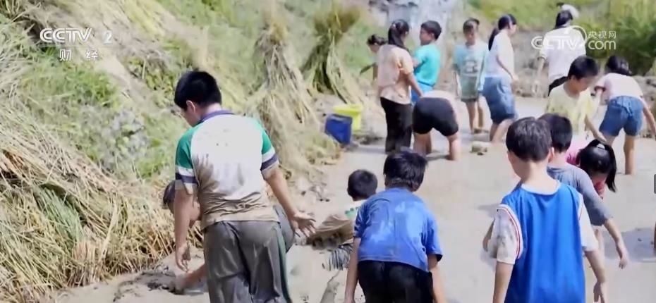為慶?!熬扌偷尽痹嚪N成功,當(dāng)?shù)剡€舉行了一場(chǎng)“扮禾抓魚(yú)”比賽,村民們分成幾組,進(jìn)行人工收割、踩禾桶脫粒、扎稻草。孩子們則跳進(jìn)水溝抓魚(yú),感受田園樂(lè)趣。