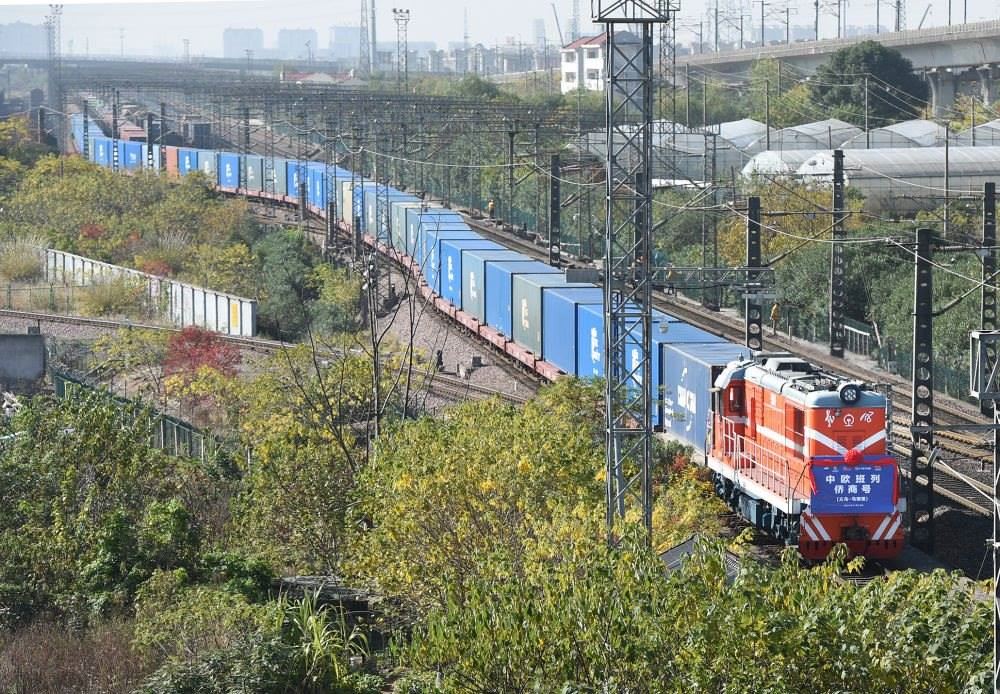 ↑2021年11月23日,“僑商號(hào)”中歐(義新歐)班列從鐵路義烏西站出發(fā)。