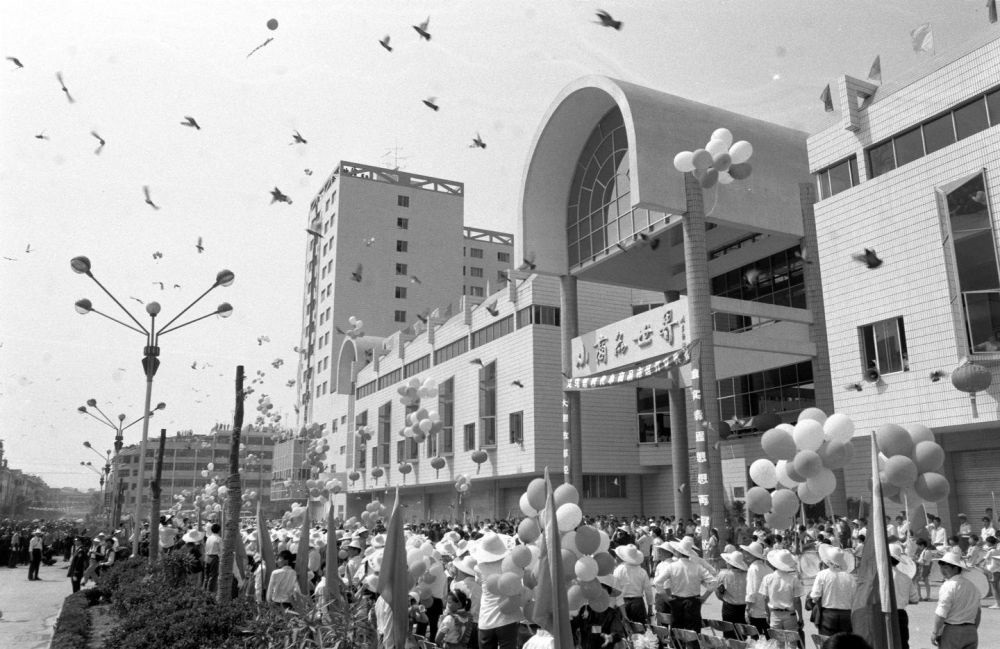 ↑ 1992年建成開(kāi)業(yè)的義烏第四代小商品市場(chǎng)(資料照片)。